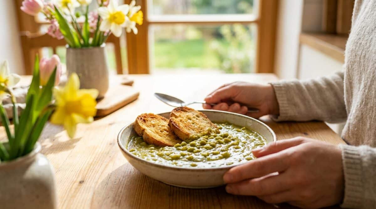 Když na jaře klesnou teploty, nic neudělá větší radost než talíř teplého, voňavého hrášku s křupavým chlebem. Tento recept vám připomene jednoduchost a útulnost domácí kuchyně, ideální volbu na rychlý a vydatný oběd.